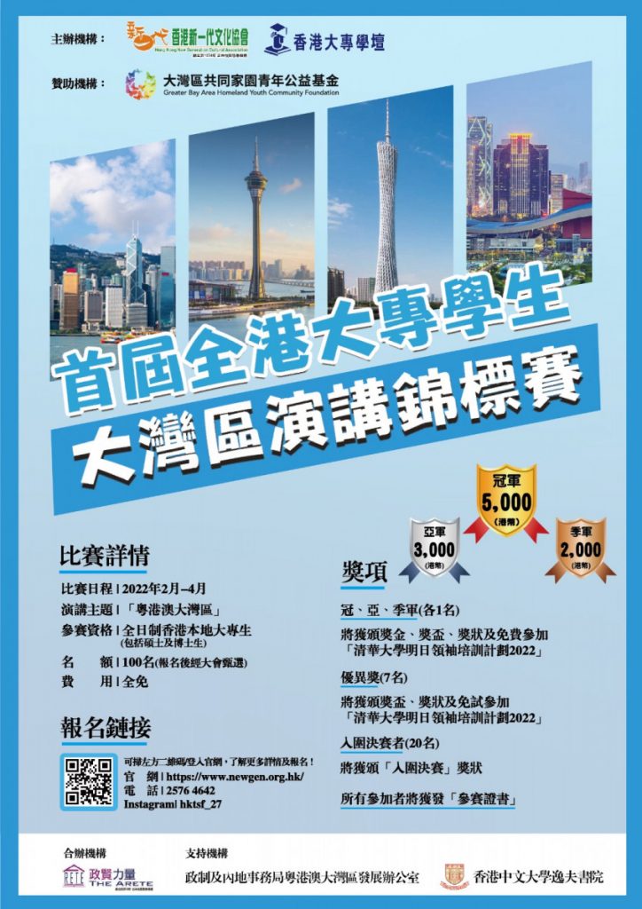 💫 報名方法:https://www.newgen.org.hk/event/%e5%85%a8%e6%b8%af%e5%a4%a7%e5%b0%88%e5%ad%b8%e7%94%9f%e5%a4%a7%e7%81%a3%e5%8d%80%e6%bc%94%e8%ac%9b%e9%8c%a6%e6%a8%99%e8%b3%bd/